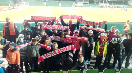 Młodzi piłkarze Gromu i uczniowie golińskich szkół, dopingowali Polskę w meczu z Grecją w ramach eliminacji do mistrzostw Europy
